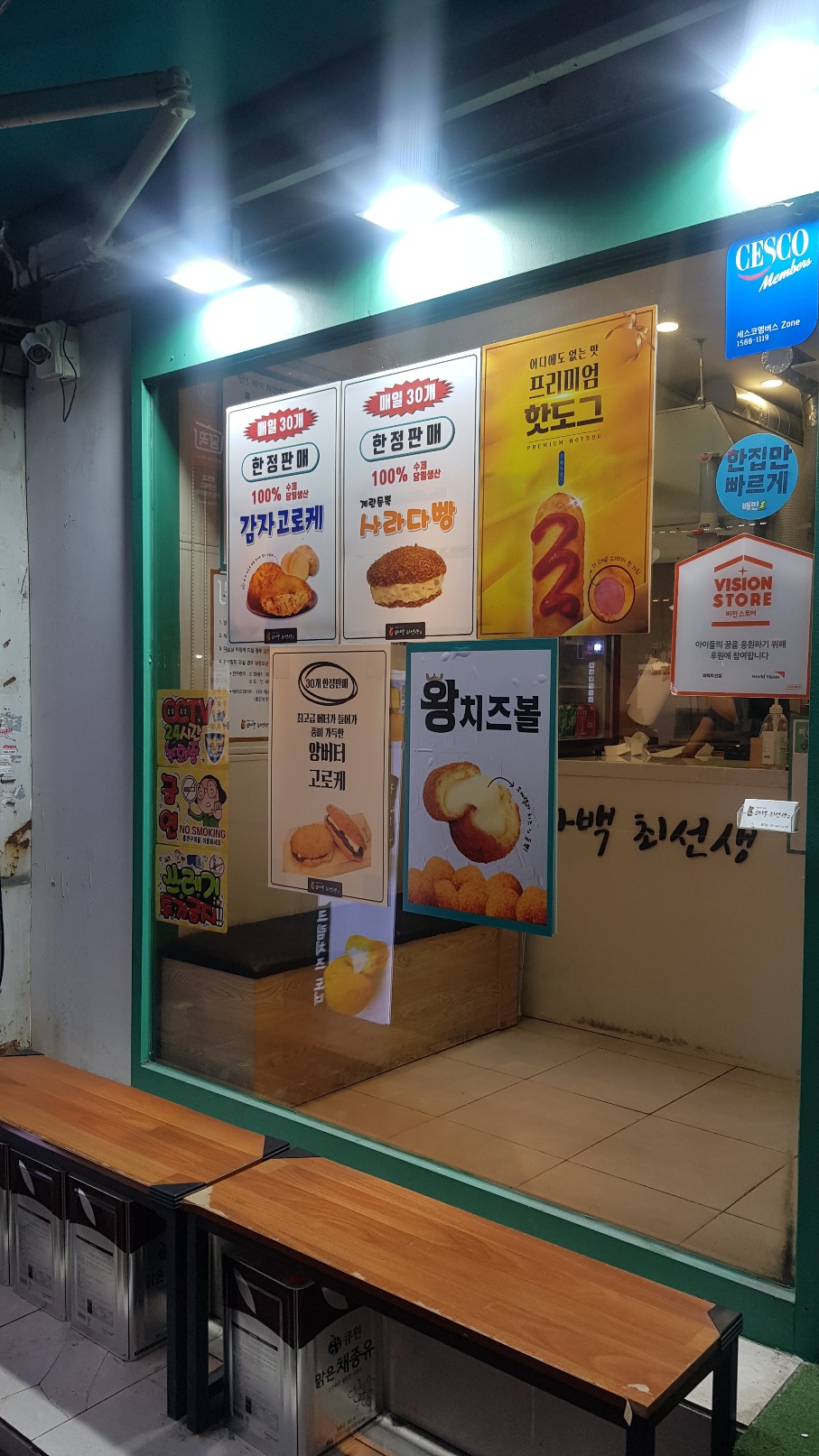 꽈배기 말고도, 감자고로케, 사라다빵, 핫도그, 왕치즈볼, 도너츠(팥, 크림) 등도 판매하고 있어요~