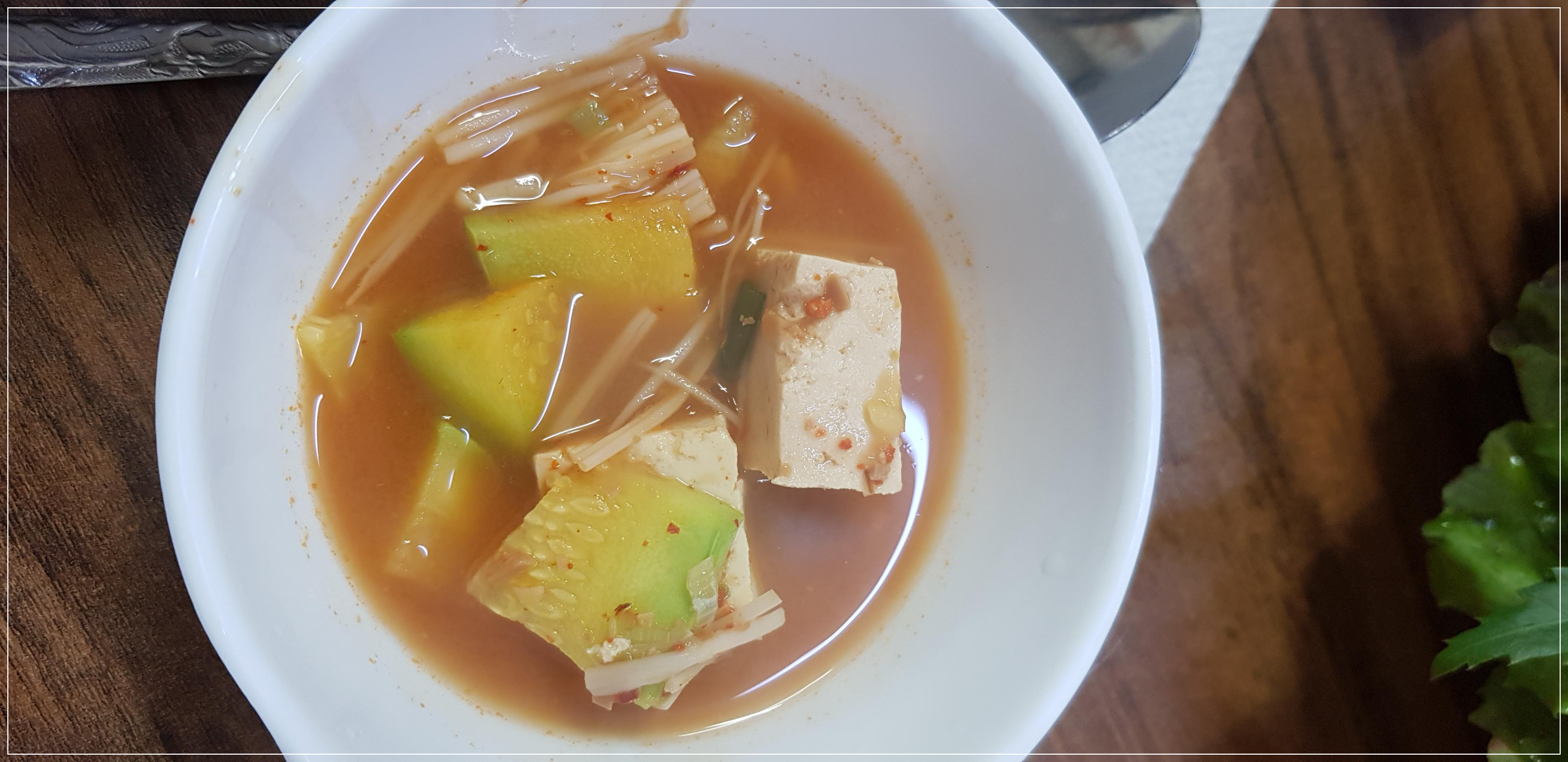 아래 사진은 그릇에 덜은 것이고, 보글보글 뚝배기에 된장찌게가 나온답니다.